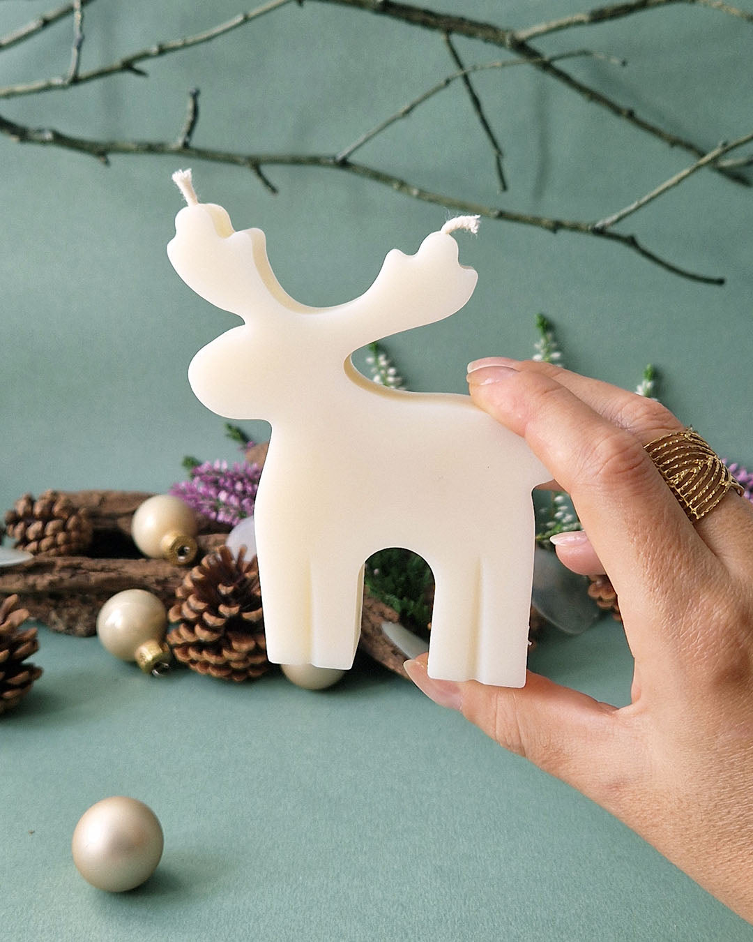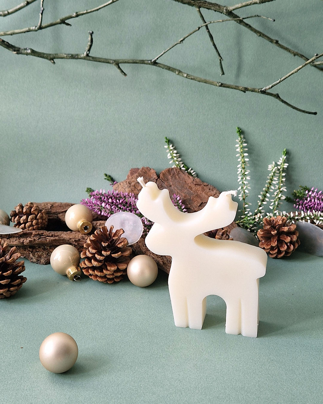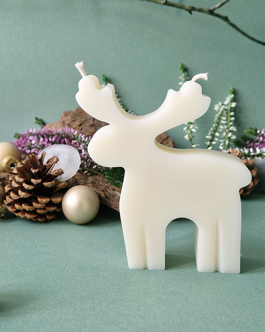 La bougie renne est parfumée avec la fragrance Sous le Sapin, une senteur fraîche et aromatique qui rappelle les sapins de noël.