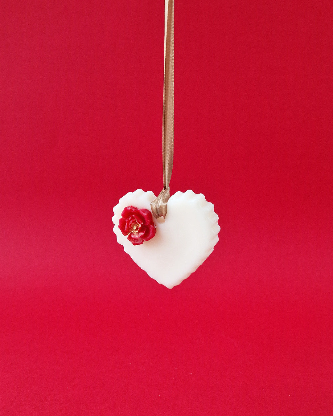 Parfumez délicatement votre intérieur avec notre romantique suspension parfumée Coeur. Pensée comme un véritable objet de décoration, cette suspension en cire parfumée diffuse ses notes à froid tout en apportant une touche décorative à votre intérieur. Subtilement décorée d'une fleur rougeoyante qui célèbre l'amour, elle est idéale dans un dressing ou une petite pièce intimiste.